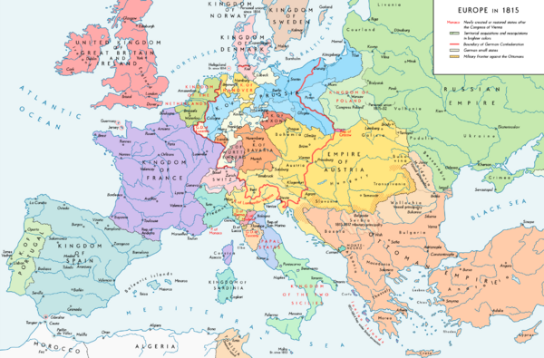 Дания, бывшая союзница Франции, лишилась Норвегии, переданной Швеции. В Италии была восстановлена власть Папы Римского над Папской областью, а Бурбонам вернули Королевство обеих Сицилий. Был также образован Германский союз.