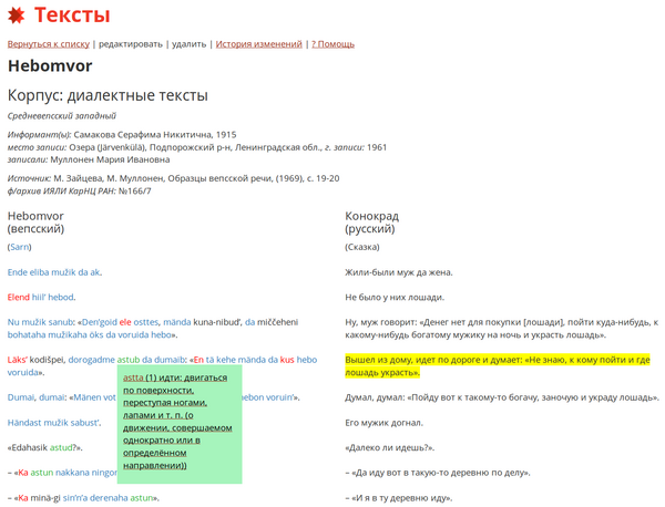 - Открытый корпус вепсского и карельского языков (ВепКар). Карельский научный центр РАН (2016). Дата обращения: 21 июля 2019. Архивировано 21 июля 2019 года.