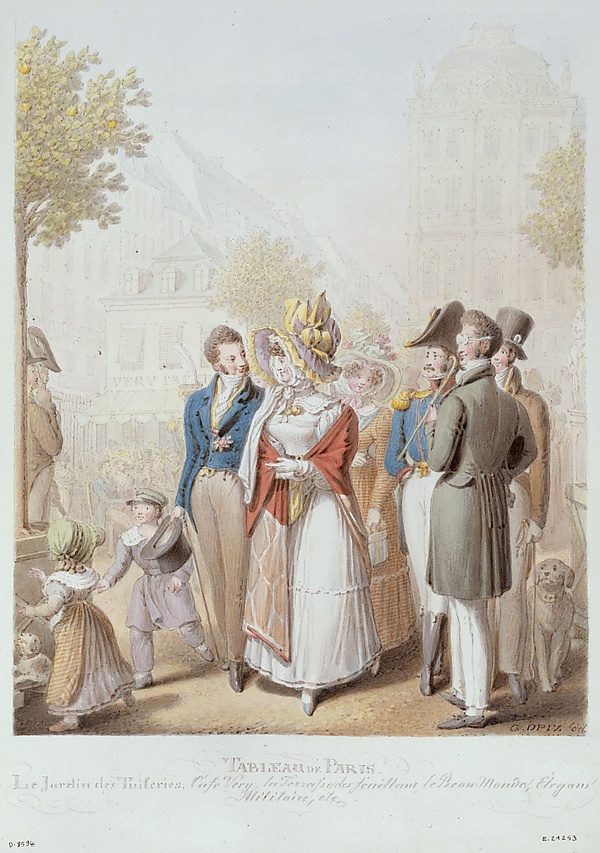 Александр Бальтазар Гримо де Ла Реньер (Alexandre Balthazar Laurent Grimod de La Reynière; 1758—1837) в своей книге «Альманах Гурманов, призванный руководствовать любителями вкусно поесть. Сочинение старого знатока. Первый год, содержащий Календарь снеди и Гастрономический путеводитель, или Прогулку Гурмана по кварталам парижским» (вышло восемь выпусков, 1803—1812), описывая гастрономические заведения Пале-Рояля, отмечал «ресторацию господина Вери, которой красное дерево и зеркала, мрамор и бронза снискали репутацию одного из роскошнейших заведений парижских». Однако при этом сетовал на «непомерную роскошь кушаний» (за обед целый луидор — 24 франка), которая сказывалась на числе посетителей, что особенно бросалось на фоне соседей. В то время Вери обладал единоличной привилегией на продажу в саду Тюильри холодных ликёров, сорбетов и мороженого («посредственного» — по замечанию автора «Альманаха»). Для этих целей была выставлена специальная палатка, «ярко освещённая в течение всего лета, часто полна гостями; однако любителям пива туда входа нет, их господин Вери смиренно просит проследовать к нему в погреб»[2]. Через несколько лет де Ла Реньер отзывался о кафе в более лестных тонах, особо отмечая то, что в меню входило 127 блюд, а также различные дополнительные закуски и десерты, причём цены были вполне сопоставимы с конкурентами[3].