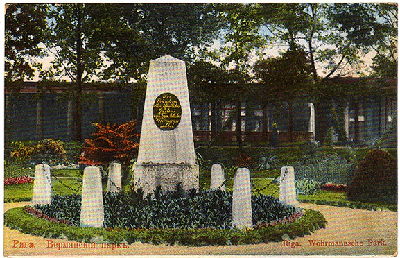 Обелиск был разрушен во время Второй мировой войны, а в июле 2000 года восстановлен на средства рижского предпринимателя, президента компании «Man-Tess» Юлия Круминьша[3].