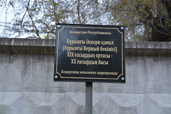 К осени 1854 года военное укрепление Верное в основном было готово. Укрепление Верное представляло собой в плане неправильный, обнесенный частоколом пятиугольник, одна сторона которого располагалась вдоль Малой Алматинки. Впоследствии деревянный частокол был заменен стеной из сырцового кирпича с бойницами. Основные строения возводились вокруг большого плаца для военных смотров и учений.