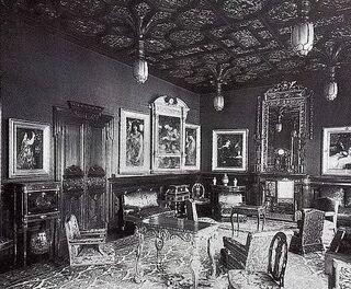 Шесть картин Россетти в студии Лейланда, 1892. Вероника Веронезе — вторая справа[3]. (Кликните на картину, чтобы перейти на статью о ней.)
