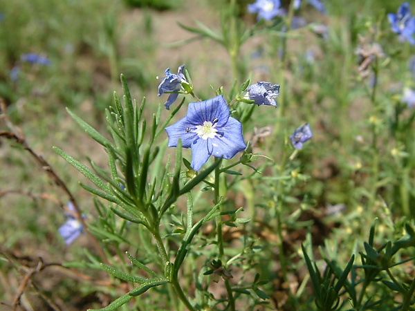 Листья длиной 8—12 мм, сидячие, короткие, у основания перисторассечённые на очень тонкие, линейные, скручивающиеся доли.
