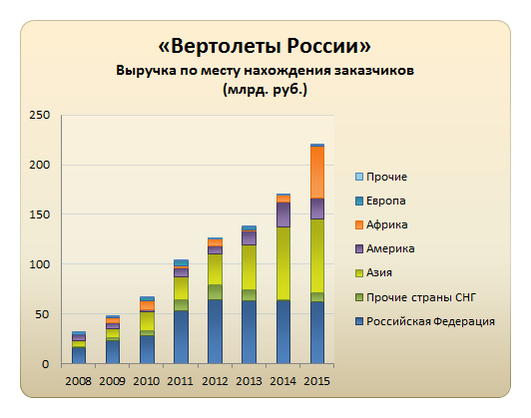По итогам 2015 года холдинг продемонстрировал значительный рост основных финансовых показателей, что связано с девальвацией рубля и экспортно-ориентированным портфелем заказов, номинированным в валюте. Одновременно произошло существенное снижения поставок вертолётной техники (212 вертолётов за 2015 год против 271 годом ранее). По словам руководства холдинга, падение поставок, в первую очередь, связано с общемировой тенденцией перенасыщения рынка и, как следствие, падением спроса на продукцию[24].