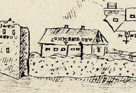 Стены были рубленые, основанные на остатках старых каменных стен. Крышу имели двускатную.