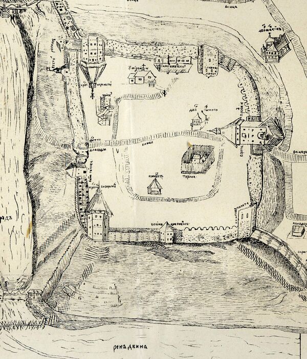 В овраге между Замковой горой и Двинской возвышенностью, на месте современной улицы Пушкина, с XVI века существовал пруд. Его, предположительно, вырыли жители города, чтобы использовать в качестве источника воды при длительных осадах. Пруд существовал до конца XIX века, когда был засыпан.