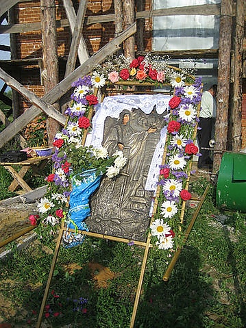 Икона Боголюбской Божией Матери, главная святыня храма, — единственная уцелевшая икона. Она 3 года пролежала в земле, а когда борьба с религией поутихла, местные жители носили её по домам для молитвы. Икона была выкуплена в 2004 году представителями приходского совета при участии местной администрации у частного лица.