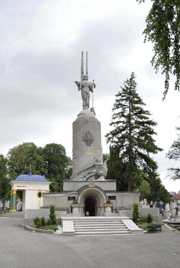 - Памятник «Императору Николаю II и 2 000 000 русских воинов великой войны» в Белграде на Новом кладбище (Ново Гробле), 1935. Под памятником находится склеп Русской Славы (1935; в соавторстве с архитектором В. В. Сташевским)[4]. Композиция представляет собой постамент в виде артиллерийского снаряда, на котором находится фигура Архангела Михаила. У подножия постамента лежит русский офицер на знамени. По центру постамента выгравирован русский двуглавый орёл и цифры «1914», слева — надпись «Вечная память Императору Николаю II и 2 000 000 русских воинов Великой войны», на обратной стороне постамента — надпись на сербском языке: «Храбро павшим братьям русским на Солунском фронте 1914—1918 гг.». Под монументом расположена часовня с останками 387 бойцов Русского экспедиционного корпуса Салоникского фронта и 136 русских артиллеристов, оборонявших Белград в 1914—1915 годах. Средства на постройку памятника были собраны среди сербского населения, которым «продавались» камни будущего монумента по цене 300 динаров.