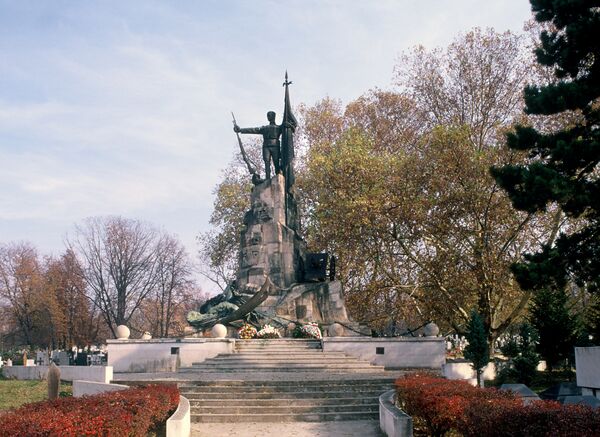 - Мемориал Сербской славы «Защитникам Белграда» на Новом кладбище (Ново Гробле) в Белграде (1931, скульптура В. П. Загороднюка). Во время сооружения памятник являлся самым высоким военным монументом на Балканах — его высота достигала 18 м. Композиция состоит из героя — югославского воина-победителя, держащего знамя и опирающегося на винтовку, попирающего смертельно раненного орла, символизирующего Германию, высота — 14 м. Обе фигуры — героя и орла — отлиты из тёмной меди. Под памятником расположена усыпальница останков русских и сербских 5 000 воинов.