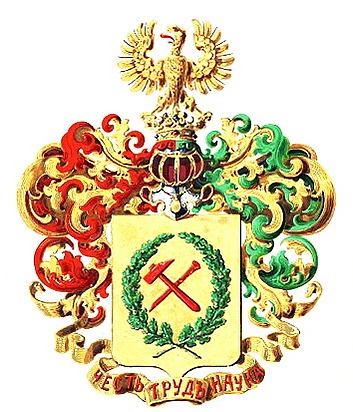 Щит увенчан дворянским коронованным шлемом. Нашлемник: золотой орёл с червлёными глазами и языком. Намёт: справа — червлёный, слева зелёный, подложенный золотом. Девиз: «ЧЕСТЬ, ТРУД, НАУКА» червлёными буквами на золотой ленте.