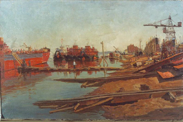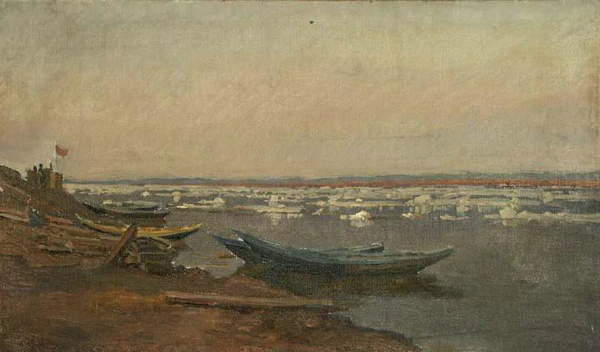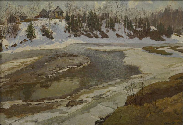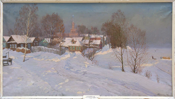 Александр Михайлович Каманин — советский живописец-пейзажист, представитель реалистической школы Сурикова. Основное направление — сезонные и городские пейзажи Нижегородской области и Волги. Работы характеризуются плёнэрной техникой, тональным построением и передачей атмосферных состояний природы. Ключевые картины: «Город Горький в феврале», «Ледоход на Волге», «Весеннее пробуждение».