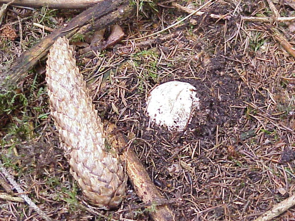 Молодое плодовое тело гриба яйцевидное, диаметром до 6 см, у основания которого заметен белый мицелиальный тяж. Оболочка (перидий) кожистая, гладкая, белая или кремовая. Под ней находится студенистая мякоть с запахом редиса. При созревании перидий разрывается на две-три лопасти и остаётся у основания ножки в виде вольвы.