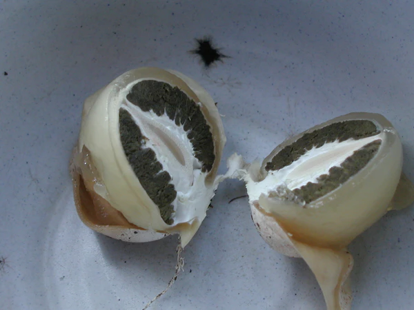 - Молодые дождевики могут быть похожи на «яйца» весёлки, но при разрезе у них отсутствует студенистый слой, а мякоть однородная и плотная[14].