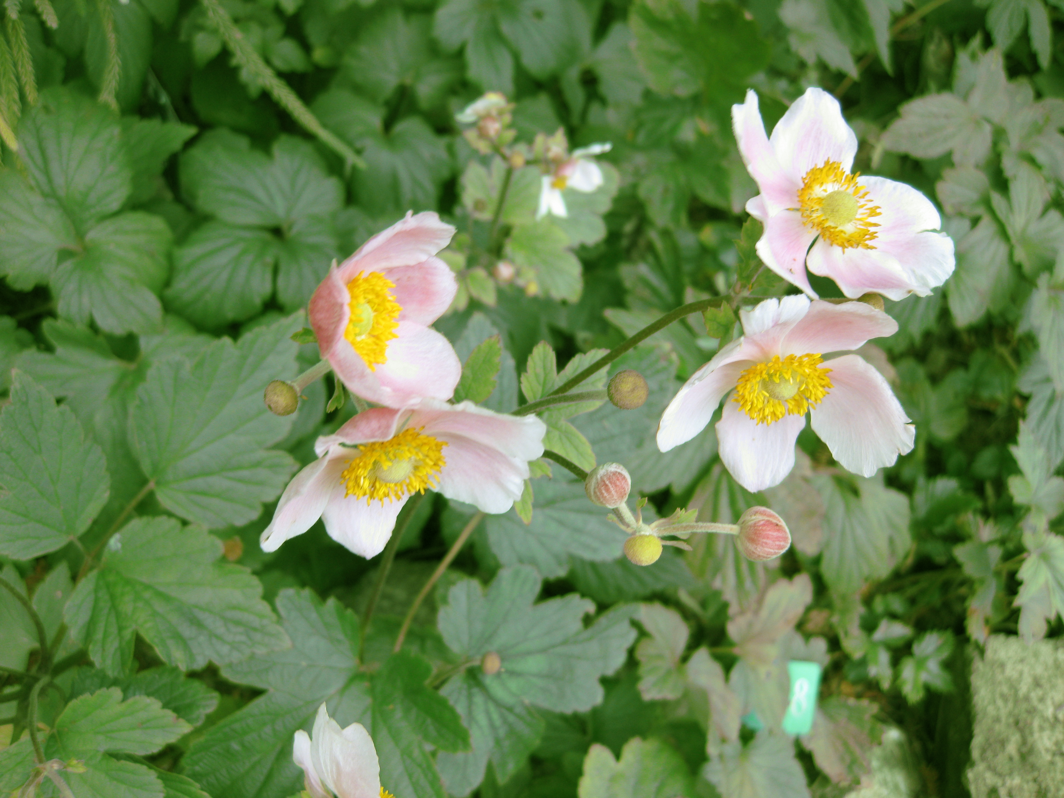 - Anemone hupehensis var. japonica 'Pamina'. Сорт немецкого происхождения. Высота растений 55—71 см[5], согласно другому источнику 80—90 см. Цветки полумахровые, ярко-розовые с жёлтым центром. Время цветения: август-сентябрь. Местоположение: освещённые солнцем участки, полутень. На солнечных участках может повреждаться листва. Засухоустойчивость низкая. Зоны морозостойкости: 5—8[10], согласно другому источнику: 4—8[11]. Сорт похож на 'Bressingham Glow', но несколько ниже, плотнее и выносливее[5].