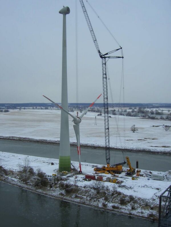 В августе 2002 года компания Enercon построила прототип ветрогенератора E-112 мощностью 4,5 МВт. До декабря 2004 года турбина оставалась крупнейшей в мире. В декабре 2004 года германская компания REpower Systems построила свой ветрогенератор мощностью 5,0 МВт. Диаметр ротора этой турбины 126 метров, масса гондолы — 200 тонн, высота башни — 120 м. В конце 2005 года Enercon увеличил мощность своего ветрогенератора до 6,0 МВт. Диаметр ротора составил 114 метров, высота башни 124 метра. В 2009 году турбины класса 1,5 — 2,5 МВт занимали 82 % в мировой ветроэнегетике[23].