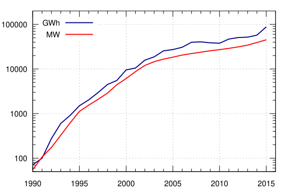 | Выработка электроэнергии, ГВт·ч | 38 | 176 | 577 | 732 | 918 | 1471 | 8284 | 12365 | 17420[14] | 19070[14] | 24744 | 27306 |
