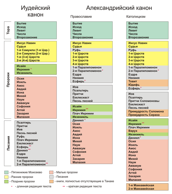 - История формирования канона Ветхого завета. Таблица.