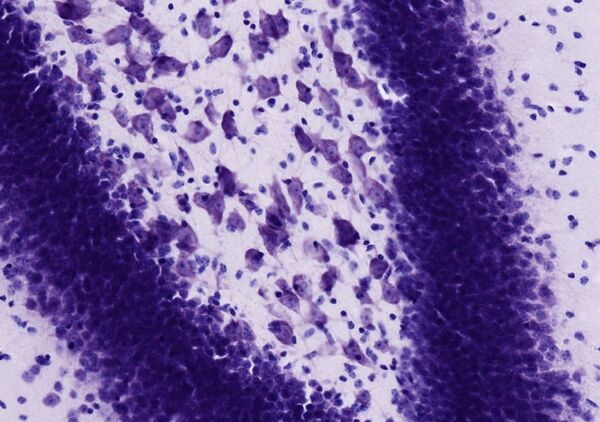 Открыта Францем Нисслем с помощью его метода окраски, изобретённого им в студенческие годы (метиленовым синим с последующим промыванием спиртом).