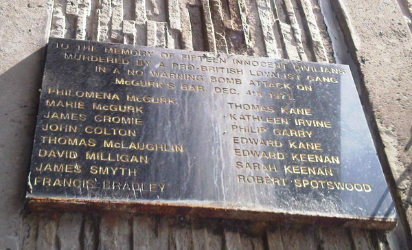 Оригинальный текст (англ.)[показатьскрыть]We [the Empire Loyalists] accept responsibility for the destruction of McGurk's pub. We placed 30lb of new explosives outside the pub because we had proved beyond doubt that meetings of IRA Provisionals and Officials were held there.[21]