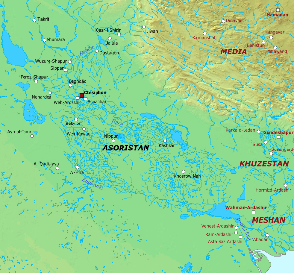 Вавилон, расположенный примерно на половине пути между Кадисией и Ктесифоном, на левом берегу Евфрата, стал местом сбора уцелевших после Кадисии остатков иранской армии; туда же прибыли, оставшиеся в живых военачальники Нахверган, Хормузан, Михран из Рейя и другие. О сосредоточении иранских сил в районе Вавилона арабам стало быстро известно из-за предательства дехкана из Бурса. Зухра поспешил известить об этом Са’да, который выслал ему на помощь дополнительное войско из Хиры. С подходом подкреплений мусульмане перешли Евфрат по временному мосту, построенному (или починенному) для них дехканом Бистамом, и подошли к Вавилону[2].