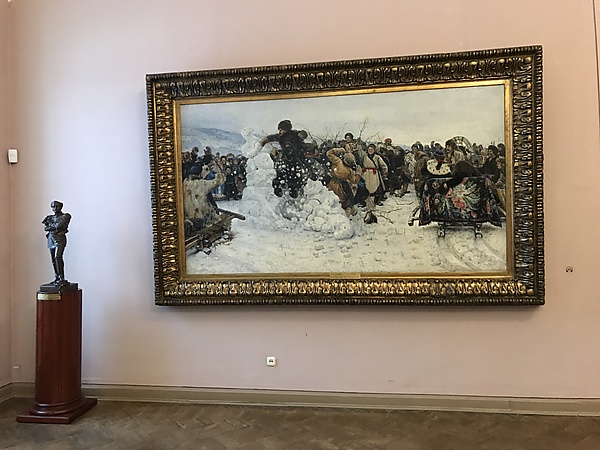 В настоящее время «Взятие снежного городка» выставляется в зале № 36 Михайловского дворца, где находятся и другие произведения Василия Сурикова, среди которых «Переход Суворова через Альпы» и «Покорение Сибири Ермаком»[71].