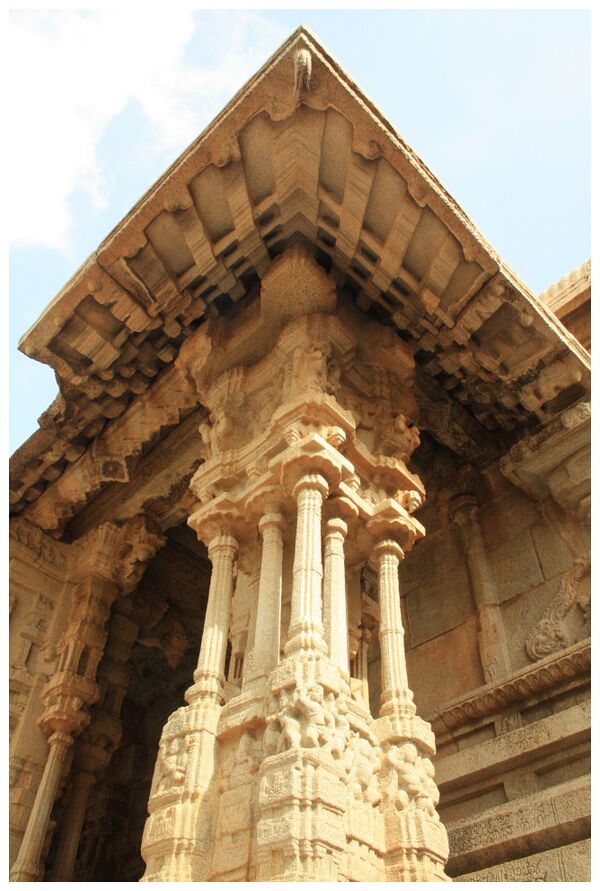 В XIV веке короли продолжали строить памятники везара или декканского стиля, но позже включили гопуры в стиле дравида для удовлетворения своих ритуальных потребностей. Храм Прасанна Вирупакша (подземный храм) построенный при Букке и храм Хазаре Рама при Дева Райе являются примерами деканской архитектуры[22]. Разнообразные и сложные украшения столбов является признаком их работы[23]. В Хампи, хотя храм Виттхала является лучшим примером их колониального стиля Калянамантапа, храм Хазара Рамасвами является скромным, но идеально законченным примером[24]. Видимым аспектом их стиля является возвращение к упрощённому и безмятежному искусству, разработанному династией Чалукья[25]. Великий образец искусства Виджаянагара, храм Виттхала, строился несколько десятилетий во время правления королей тулувы[26].