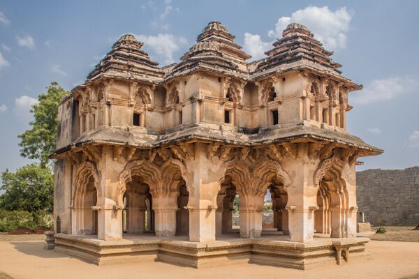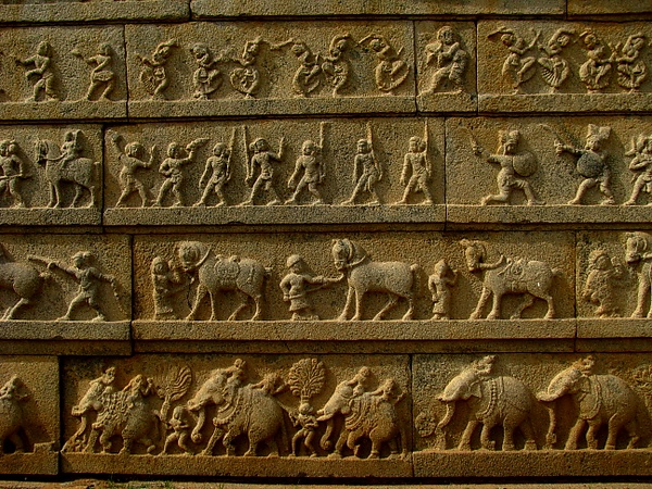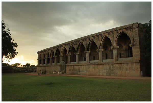 Одним из аспектов архитектуры Виджаянагара, который показывает космополитизм великого города, является наличие множества светских структур, имеющих исламские черты. В то время как политическая история концентрируется на продолжающемся конфликте между империей Виджаянагара и Деканскими султанатами, архитектурная история отражает более творческое взаимодействие. Есть много арок, куполов и сводов, которые показывают это влияние. Концентрация сооружений, таких как павильоны, конюшни и башни, позволяет предположить, что они предназначались для королевской семьи[27]. Декоративные детали этих структур, возможно, были включены в архитектуру Виджаянагара в начале XV века, совпадая с периодом правления Деварайя I и Деварайя II. Известно, что эти короли нанимали многих мусульман в свою армию и двор, некоторые из которых, возможно, были мусульманскими архитекторами. Этот гармоничный обмен архитектурными идеями должен был происходить в редкие периоды мира между индуистским и мусульманским царствами[28]. Маханавами Дибба («Великая платформа») имеет рельефные изображения, на которых фигуры, похоже, имеют черты лица турок из Центральной Азии, которые, как было известно, были наняты в качестве королевских служителей[29].