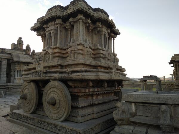 Ещё один элемент стиля Виджаянагарской является резьба и освящение больших монолитов, таких как Сасивекаалу (горчичный) Ганеша и Кадалекаалу (арахисового) Ганеша в Хампи, в Гомматешвара (Бахубали) монолитов в Каркала и Венур, и Нанди быка в Лепакши. Виджаянагарские храмы в Колара, Канакагири, Шрингеря и других городах Карнатака; храмы Тадпатри, Лепакши, Ахобилам, храм Тирупати Венкатешвара и Шрикалахасти в штате Андхра-Прадеш; храмы Веллоре, Кумбаконам, Канчи и Шрирангам в Тамилнаду являются примерами этого стиля. Искусство Виджаянагара включает настенные росписи, такие как Дашаватара и Гириакаляна (свадьба Парвати, супруги Шивы) в храме Вирупакша в Хампи, настенные росписи Шивапурана (рассказы о Шиве) в храме Вирабхадра в Лепакши. Это смешение южно-индийских стилей привело к богатству, невиданному в более ранние века, которое превосходит всё ранее созданное в Индии.