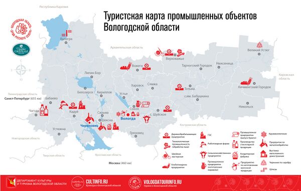 В 2017 году был учреждён Совет по развитию промышленного туризма в Российской Федерации[46]. В результате работы Совета в 2018 году была представлена концепция «Карты промышленного туризма Российской Федерации»[47]. Среди лидеров промышленного туризма в России — Урал, Удмуртская Республика[48], Волгоградская[49] и Вологодская области[42] и др. территории и регионы.