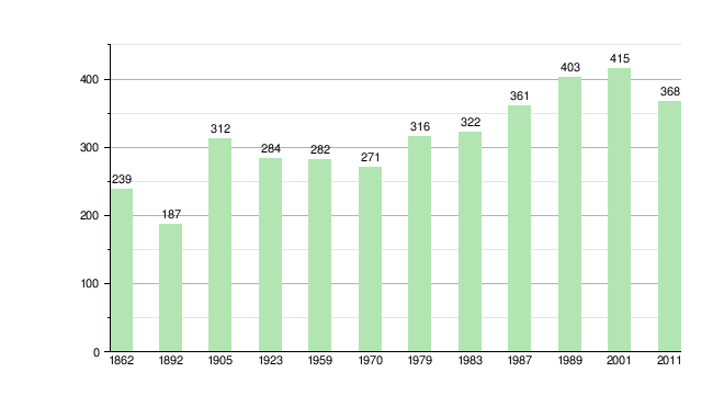 | 1862[6] | 1892[7] | 1905[8] | 1923[9] | 1959[10] | 1970[11] |