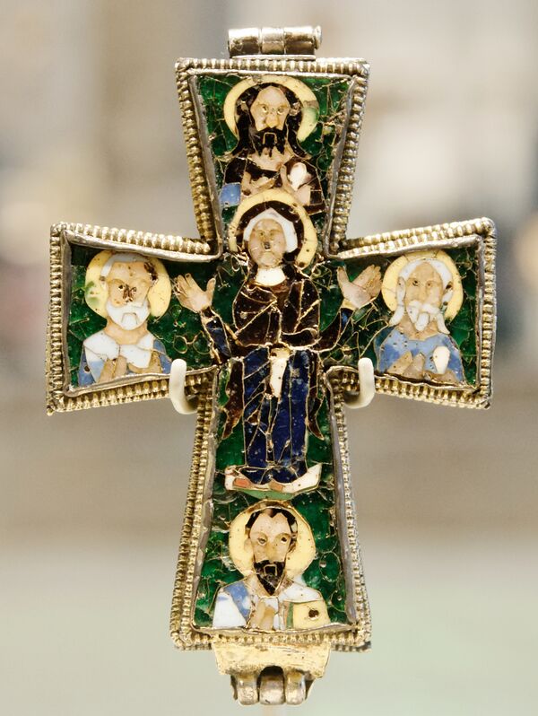 Перегородчатая эмаль в Византии известна с VI века. Византийские историки описывают престол собора Святой Софии (VI век), указывая на его орнаменты в технике эмали[4]. Также и многие двери собора были эмалированы. Расцветом искусства византийской эмали стал XI век[5] (например, Пала д'Оро, корона Мономаха). Изделия этого периода отличает наиболее тонкий слой эмали, чистота и прозрачность красок, а также особая шлифовка, которая придаёт блеск поверхности[6].
