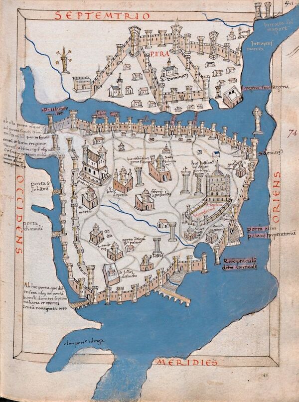 О принципах византийского градостроительства известно только из книги Юлиана Аскалонита «О городском благоустройстве Палестины»[134]. Трактат, составленный в VI веке в качестве руководства по строительству в палестинском Аскалоне, имел хождение как минимум до середины XIV века. Основной своей задачей автор видел минимизацию ущерба существующим структурам и их владельцам в ходе строительства, а также распределению прав и ответственности между всеми участниками процесса[135]. В частности, при проектировании бани, то есть пожароопасного сооружения, при выборе расстояния между домами следовало учитывать этажность и наличие глухих стен у прилегающей застройки. Для постройки булочной, работающей чаще всего в ночные часы, Юлиан предлагал выбирать возвышенное, хорошо просматриваемое место. В трактате рассмотрены и способы предотвращения ущерба окружающим от вибрации при производство гипса, зловония и шума. Если неудобства окружающих от тех или иных производств являлись непереносимыми, как например, зловоние при производстве солений, их следовало размещать в пригородах. Некоторые виды производств, такие как изготовление стекла и кузнечное дело, были в городах запрещены. Публичные дома нельзя было устраивать в тавернах и жилых домах — запрет касался только городов, в сельской местности применение этого правила оставлялось на усмотрение местных властей[136].