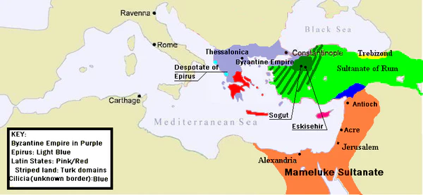 После Четвёртого крестового похода византийцы оказались в крайне неустойчивом положении. Падение Константинополя в 1261 году и последующие кампании ослабили Румский султанат, что позволило многочисленным бейликам обрести независимость, как это сделал Осман I.