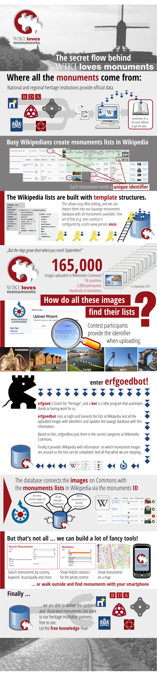 Задачей веб-сайта и приложений является упрощение процесса добавления уникального идентификатора фотографии, так как большинство участников загружают фото на Викисклад впервые и затрудняются выполнить эту операцию самостоятельно. Идентификатор и другая информация из конкурсного листа добавляется к фото в момент загрузки: к примеру, идентификатор для памятника по адресу «Smedestraat 33, Haarlem» — 19695, его можно найти на сайте конкурса[прим 2].