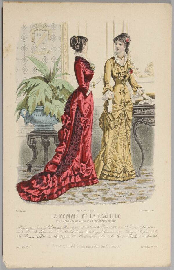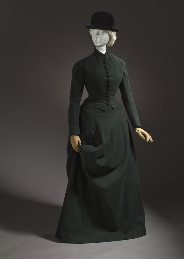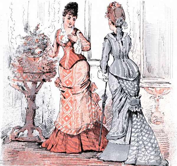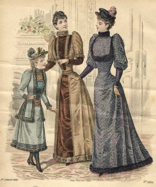 Также к 1880-м женское тело почти полностью скрывается под одеждой: короткие рукава и тем более декольте допустимы только в вечерних туалетах, в то время как все остальные лифы надёжно закрывали кожу от кистей рук до подбородка.