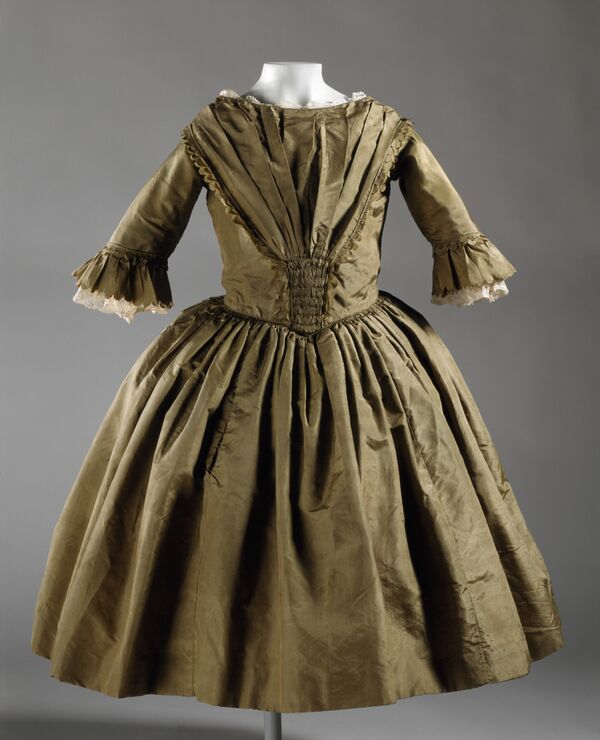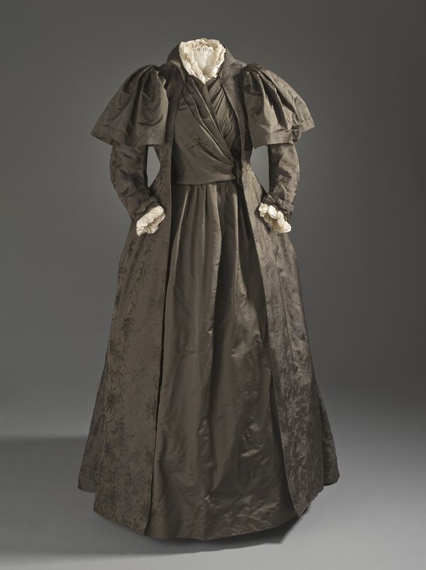 - Домашнее платье или утреннее платье (Morning dress) — платье простого кроя для дома. В этом наряде дамы выходили к завтраку и встречались с домашними. Отличительные черты домашнего платья — это длинные рукава, высокий вырез, приглушенные цвета, без украшений — либо с минимальным количеством. Домашнее платье практически не менялось по сезону.