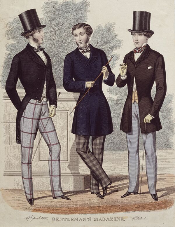 Гардероб обеспеченного джентльмена состоял, как правило, из следующих комплектов: костюмы для визитов и прогулок, для верховой езды, для охоты, для посещения клубов, для обедов дома, для обедов вне дома, бальный наряд, костюм для карточной игры и, при необходимости, костюмы для прочих мероприятий.