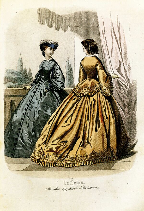 Во второй половине века произошли важнейшие явления: возникновение Домов моды и открытие магазинов готового платья благодаря интенсивному развитию швейной и текстильной промышленности. Это означало, что теперь модные туалеты становились более доступными. Усовершенствование ткацких станков и красителей позволило разнообразить ассортимент тканей.