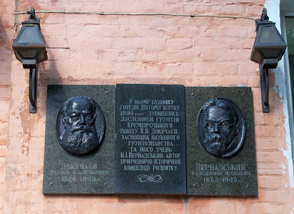 В 1890 году в Кременчуг прибыла научная экспедиция под руководством известного русского учёного-почвоведа Василия Васильевича Докучаева. Докучаев остановился в «Виктории», здесь же по его рекомендации остановился будущий президент Украинской академии наук Владимир Иванович Вернадский, входивший в экспедицию. 19 апреля 2001 года на фасаде здания была установлена мемориальная доска в память об этих учёных (авторства Н. Анисимова и А. Котляра)[1]. В 2005 году в городе также установлен памятник Вернадскому.