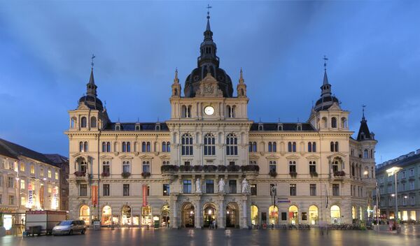 - 1889—1993 годы — Здание суда, Грац, Штирия, Марбургер Кай (нем. Marburger Kai) 49;
