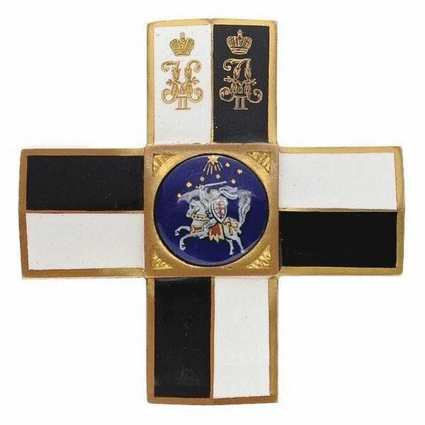 Утвержден 27 февраля 1915 года. Золотой четырёхконечный равносторонний крест, концы которого разделены на белое и чёрное эмалевое поле. На верхнем конце, на чёрном поле, белый эмалевый вензель Александра II, на чёрном — золотой вензель Николая II. В центре «пряжка» училища (на чёрном фоне со звездами скачущий литовский всадник). На боковых срезах креста девизы училища: «Виленецъ одинъ въ поле и тотъ воинъ. Къ высокому и светлому знай верный путь». Диаметр 40 мм. Бронза.