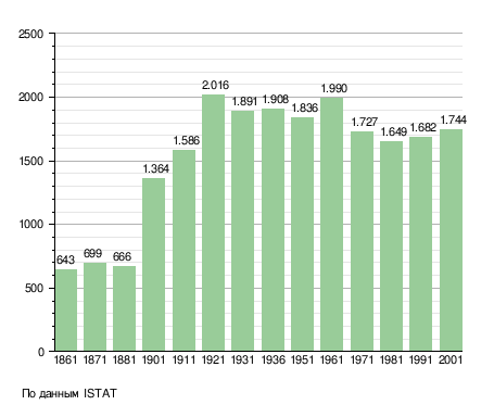 Население составляет 1744 человека (2008), плотность населения составляет 349 чел./км². Занимает площадь 5 км². Почтовый индекс — 24020. Телефонный код — 0346.