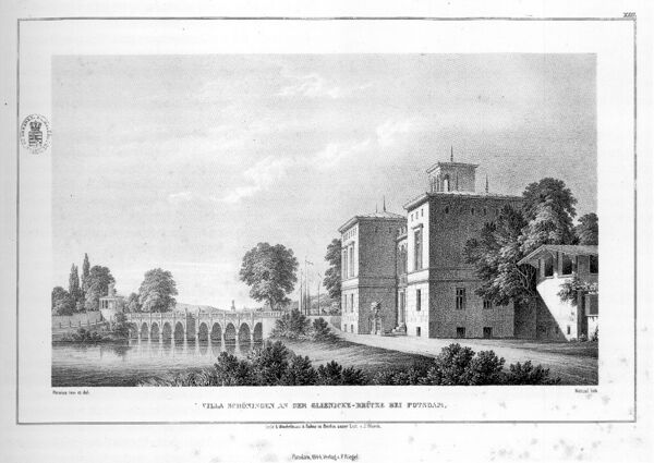 По заказу короля Фридриха Вильгельма IV прусский архитектор Людвиг Персиус спроектировал дом в итальянском стиле для генерала Курта фон Шёнинга (1789—1859). Название вилла получила в честь города Шёнинген герцогства Брауншвейг-Люнебург, откуда происходили предки генерала. По другую сторону моста стоит замок принца Карла Прусского, у которого фон Шёнинг служил камергером. После смерти владельца виллы в 1859 году её приобрёл принц Карл, а в 1871 году её купил Мориц Якоби[2] для дочери Анны и её супруга Германа Валиха.