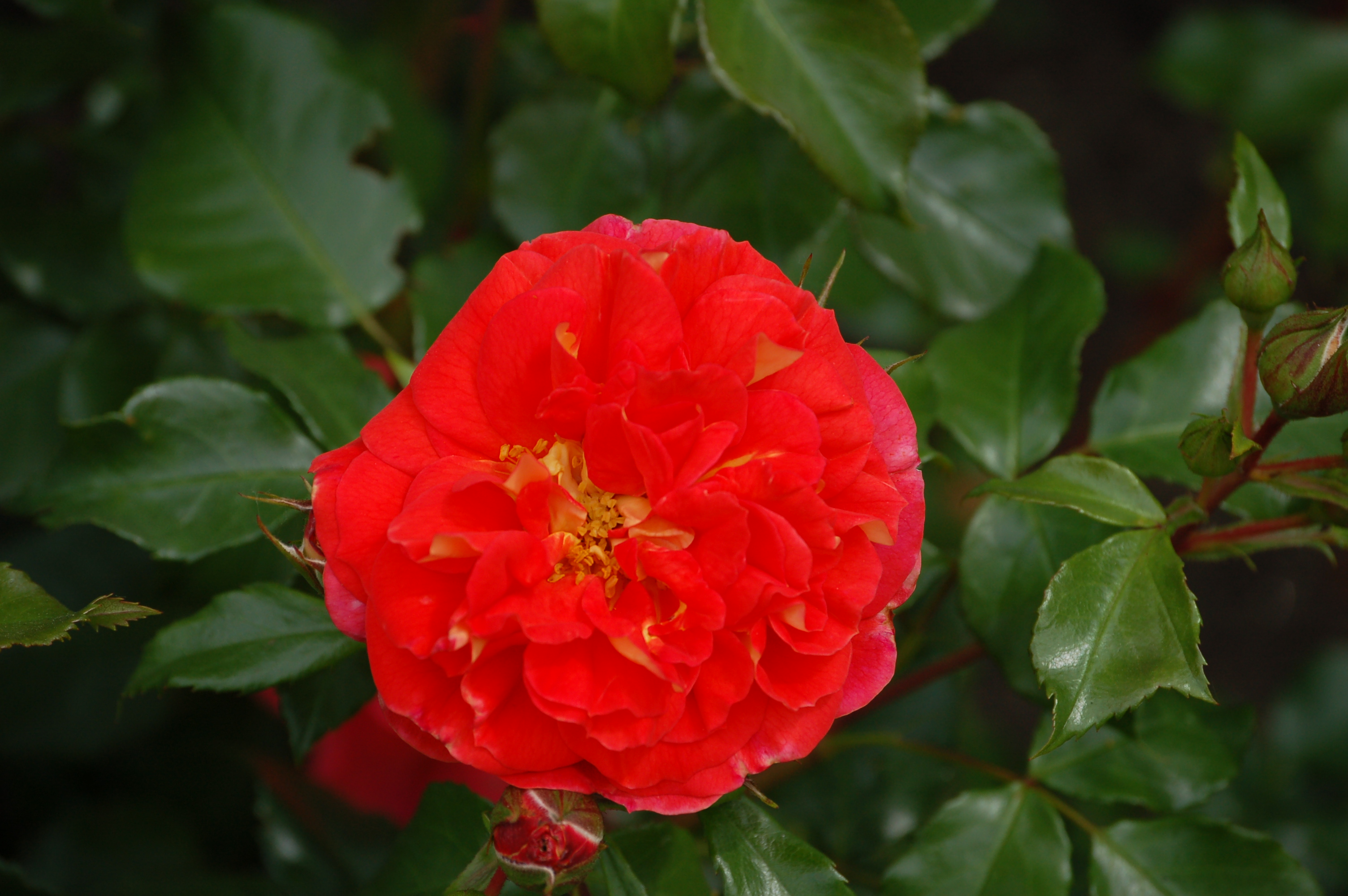 | 'Roter Korsar' | bush, shrub | тёмно-красный | 2004 | ||