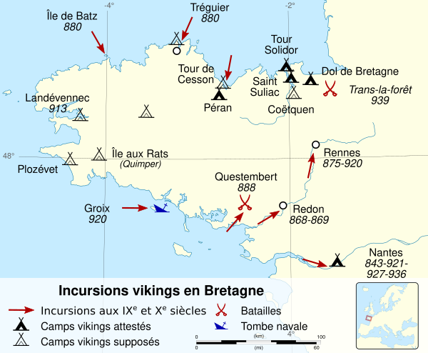 В 936 году Ален II по призыву аббата монастыря Ландевеннек отправился в Бретань и высадился в Доле. Воспользовавшись разногласиями между норманнами, он в течение двух лет с помощью английской армии и восставших бретонцев вытеснил норманнов из Бретани. К 938 году он захватил Нант и Ванн, а также принял титул герцога Бретани. Столицей своего герцогства Ален сделал Нант. Окончательное поражение норманнам Ален нанес 1 августа 939 года в битве при Тране, одержав победу в союзе с Юдикаэлем Беранже и графом Мэна Гуго I.