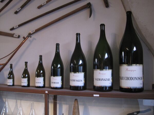 | 3.0 | 4 | Иеровоам | По имени легендарного библейского царя, для вин из Бордо — 4,5 литра, для Бургундии и Шампани — 3 литра | Да[25] | Да | |