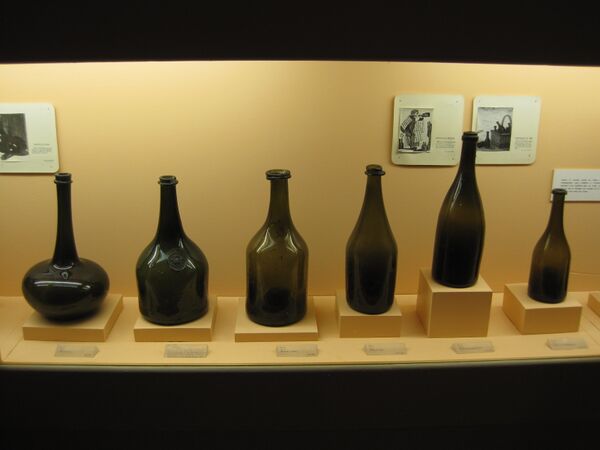 Технология изготовления стекла была известна также с античных времён, но производительность и стоимость производства стеклянной тары долгое время не могли обеспечить нужды виноделов, для которых изготавливать стеклянные бутылки ручной работы было непозволительной роскошью. Ситуация кардинально изменилась с внедрением угольных печей во второй половине XVII века. Себестоимость производства стекла стала стремительно снижаться[5]. Повышенная теплотворность новых угольных печей привела к выработке рецептов новых типов стекла, в частности — прочного тёмно-зелёного стекла. В течение XVII—XVIII веков себестоимость стеклянных сосудов, в частности бутылок, постоянно снижалась, в то время, как стоимость аналогичных керамических сосудов оставалась практически неизменной. К тому же, стеклянные сосуды оказались прочнее керамики, что было критично для транспортировки продукции виноделов. К концу XVII столетия только в Англии работало 42 завода с годовой производительностью в 3 миллиона бутылок, а английские технологии тёмно-зелёного стекла стали активно осваивать и в континентальной Европе. К середине XVIII века ассортимент разнообразных форм и размеров производимых сосудов, в том числе и бутылок для вина, значительно расширился. Рекламное объявление 1762 года завода в Саутуарке гласило: «Лучшие бутылки для вина всех размеров, лучшие бутылки для шампанского, лучшие бутылки для скотча, галлоные бутыли для флота, пинты, кварты и горшочки под табак, горчицу и фруктовые заготовки для кондитеров…»[6].