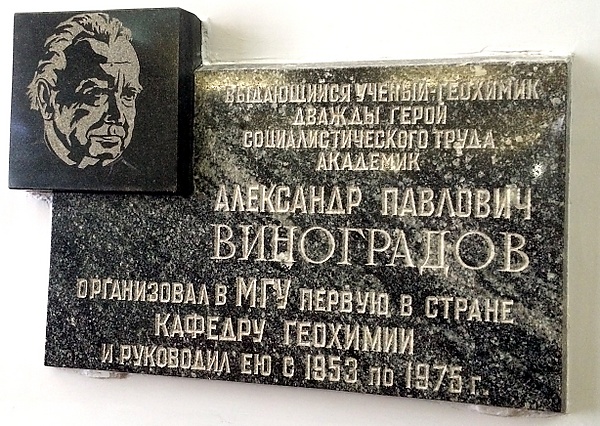 Мемориальные доски А. П. Виноградову установлены на здании Военно-медицинской академии в Санкт-Петербурге[9] и на фасаде ГЕОХИ (улица Косыгина, дом № 19) в Москве.
