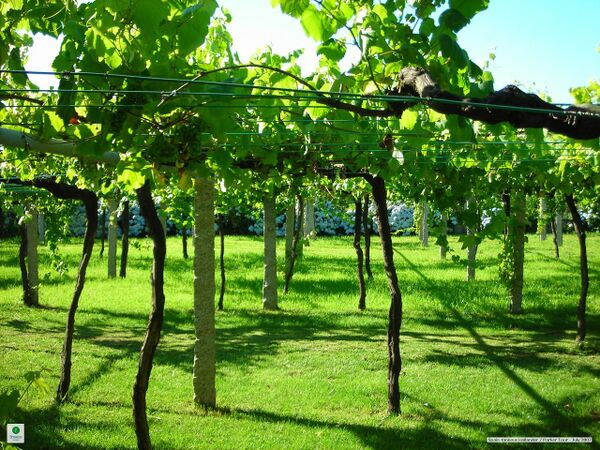 Участок земли, на котором выращивают виноград, называется виноградником. В качестве опоры для длинных вьющихся лоз со времён Колумеллы используют специальные шпалеры.