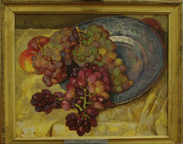 | Виноград на синей тарелке с жёлтой скатертью. 1974 | |